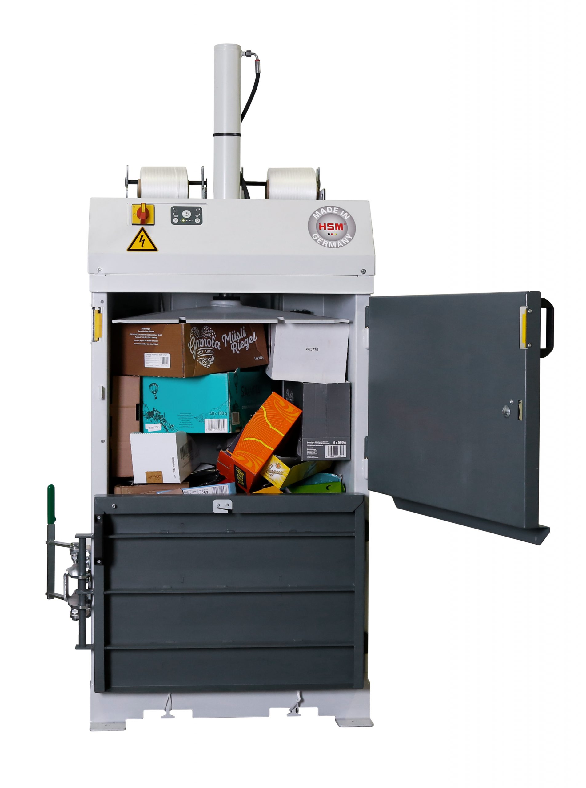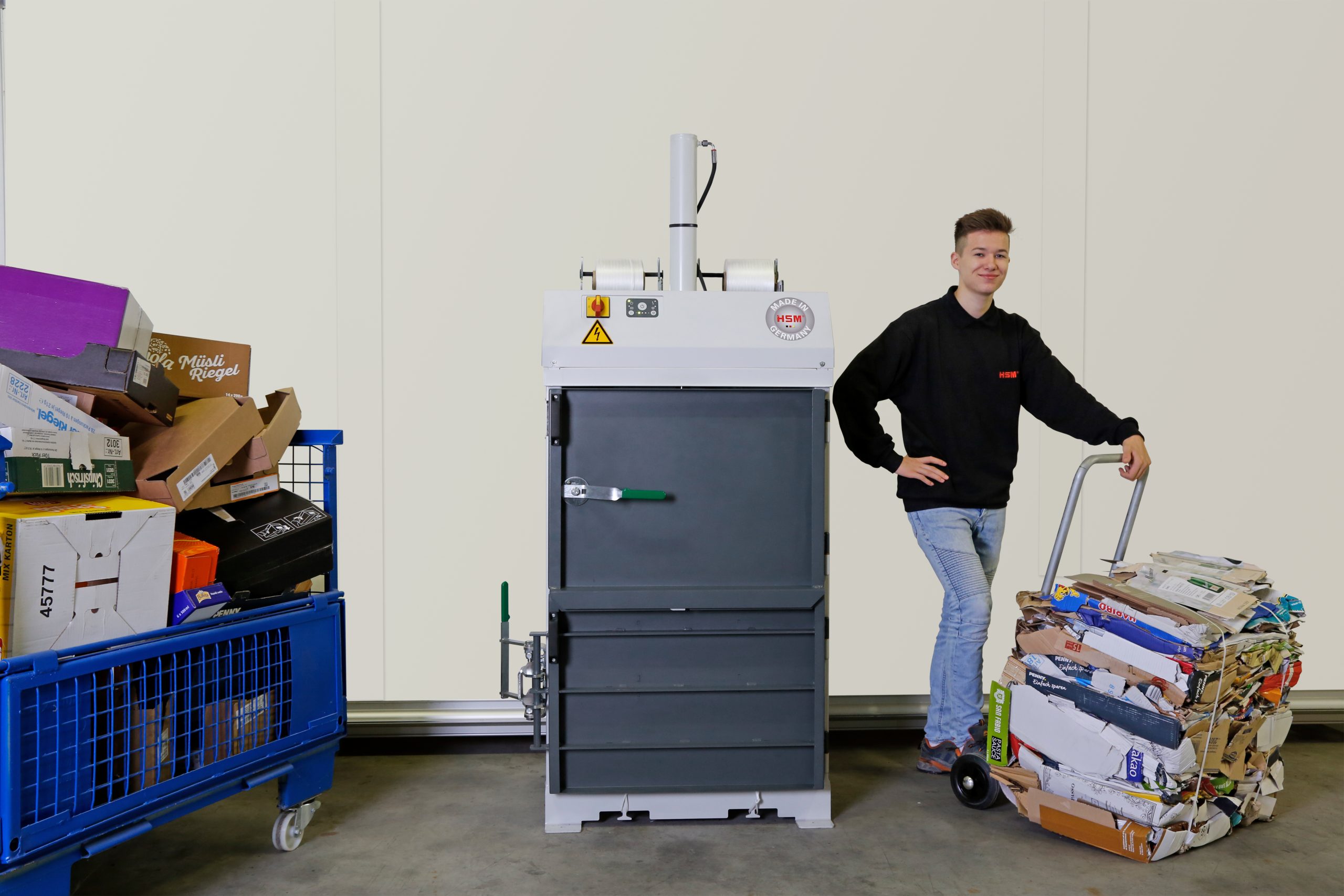 Използвайте вертикалната преса за балиране “V-Press 503” от HSM, за да компресирате фолио, смесена хартия и картон до минимум. Този модел е подходящ за малки обеми материали в печатарската и опаковъчната индустрия, в логистиката и спедицията, в търговията на дребно и индустрията и производството. С този компактор за отпадъци, обема от боклук може да бъде намален значително, така че не само спестявате време за изхвърляне, но и някои разходи.